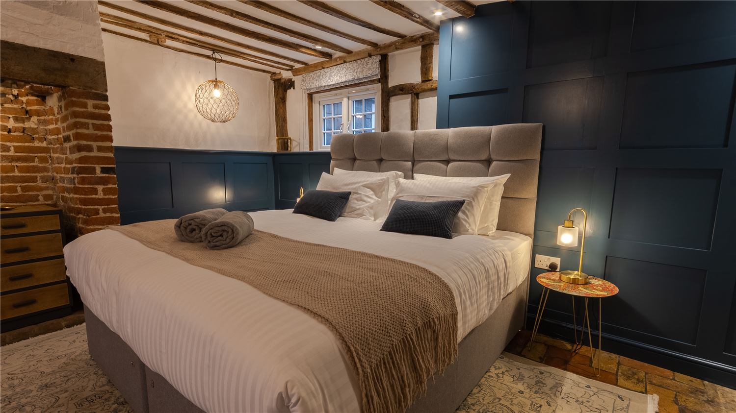 ♛ Bedroom 2 (Ground Floor): Super King-Size Bed, Ensuite Bathroom. (please note this room has a beam at a height of 6ft)